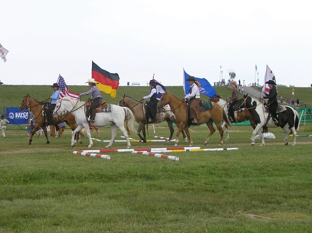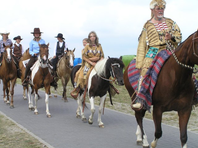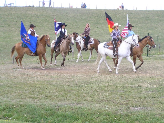 Im Jahr 2010 haben wir am Westernfestival in Tossens teilgenommen. Gezeigt haben wir eine Quadrille mit Fahnen in Western- und Indianerkleidung.