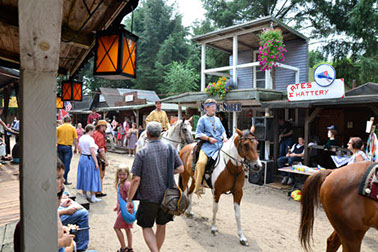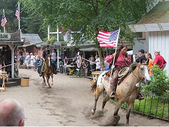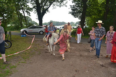 In den selbstgenähten Indianerkleidern und der originalgetreuen Westernoutfits reiten wir durch die Westernstadt.