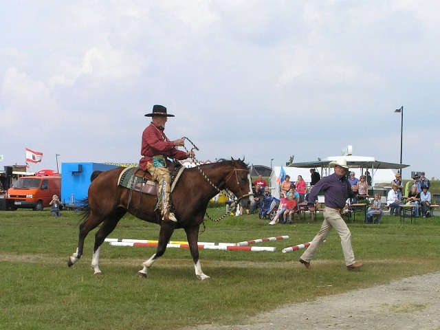 Im Jahr 2010 haben wir am Westernfestival in Tossens teilgenommen. Gezeigt haben wir eine Quadrille mit Fahnen in Western- und Indianerkleidung.